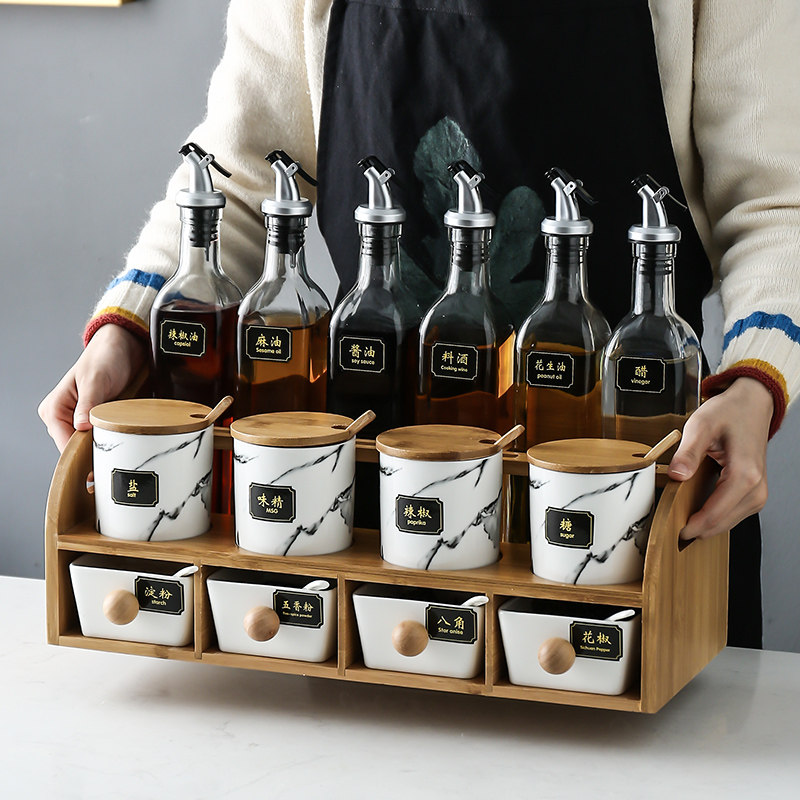 Salt Box Sauce Box Nordic Seasoning Jar Combined Fitted Kitchen Creative Sauce Bottle Home ceramic Sauce Tank Suit