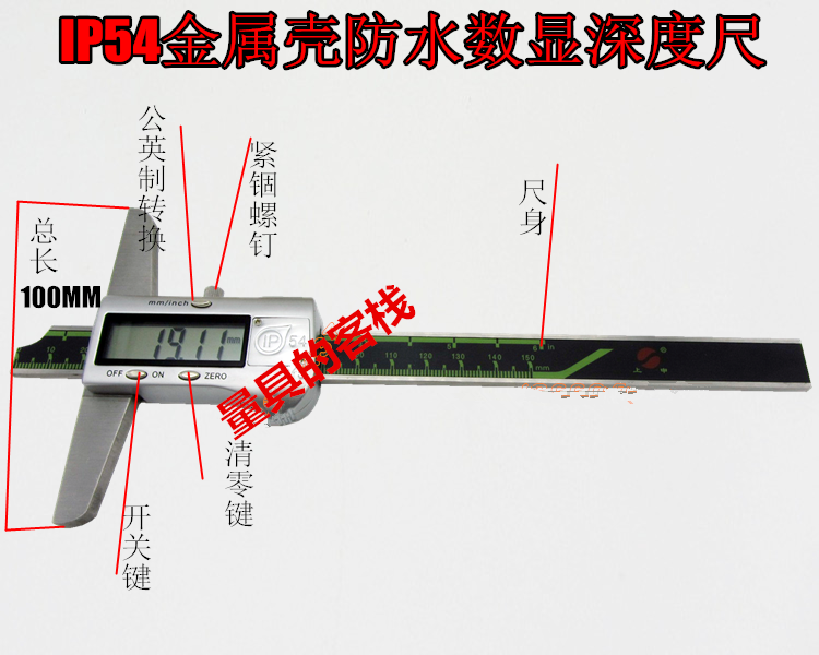Shanghai Shangshen high-end IP54 waterproof digital display depth caliper 0-150-200-300mm metal case cursor