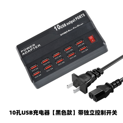 10 ports white 10A10 ports black 10A with switch 12 ports black 12A Huawei fast charging plug 12 ports black 12A with switch 8 ports 8A charger 6 ports QC3 0 display