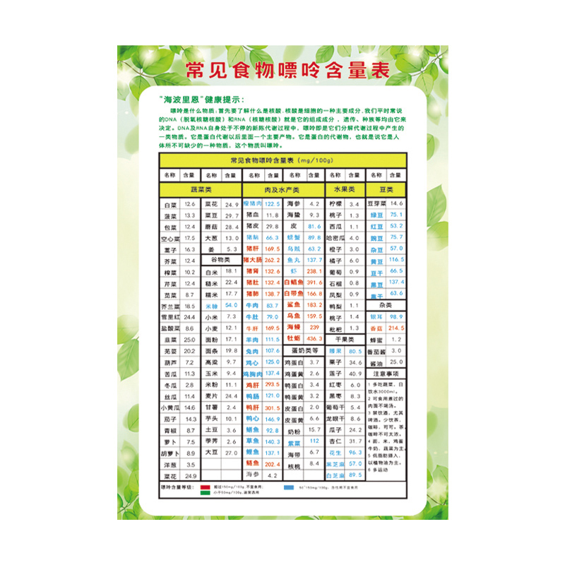 Common food purine content table home healthy diet should be banned poster painting fruit calorie nutrition sticker