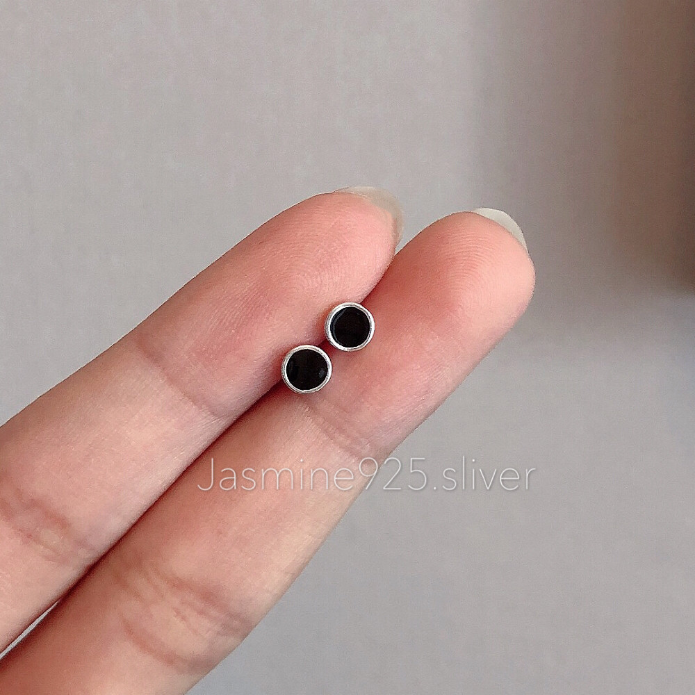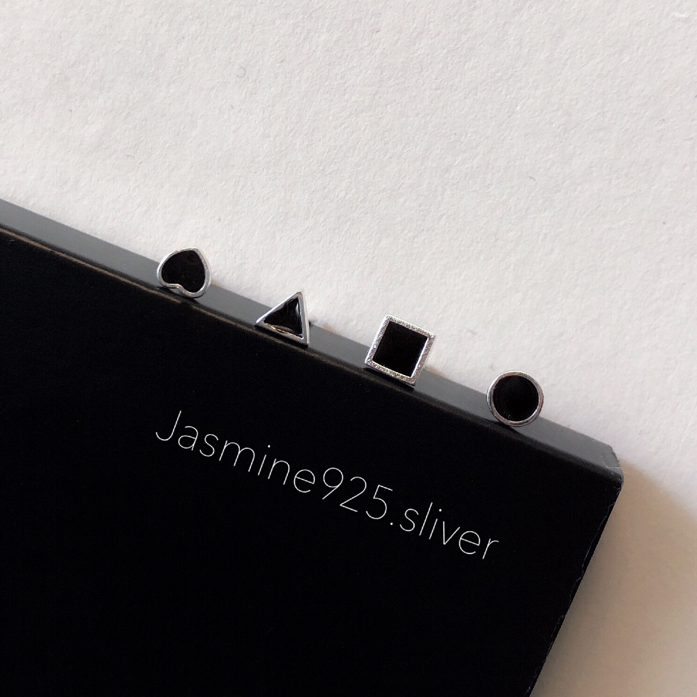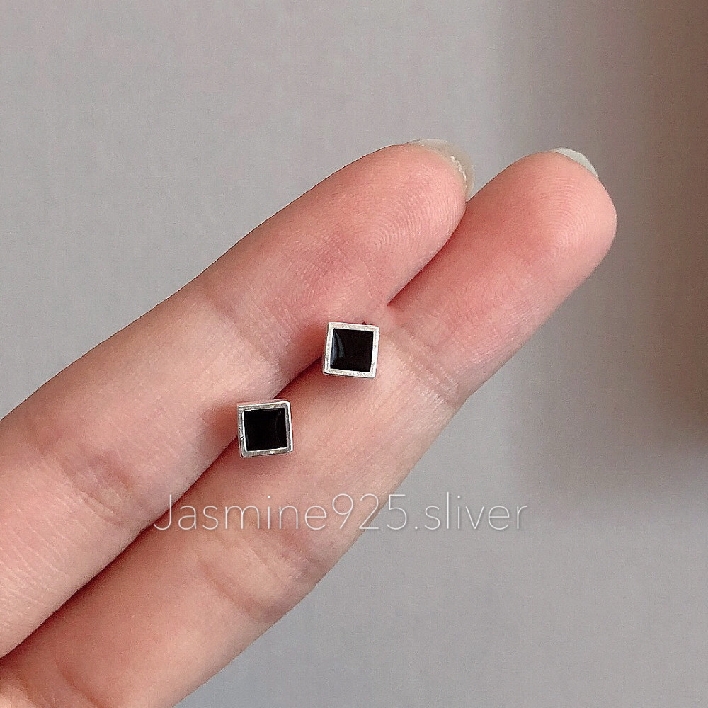 S925 sterling silver Black personality geometric mini ear needle base for men and women square round triangle love ear bone