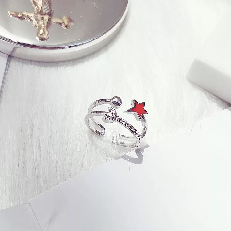 Five-pointed star ring niche design Korean version of the hipster student tail ring fashion personality joint ring net red index finger ring