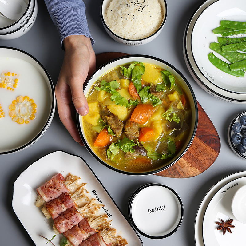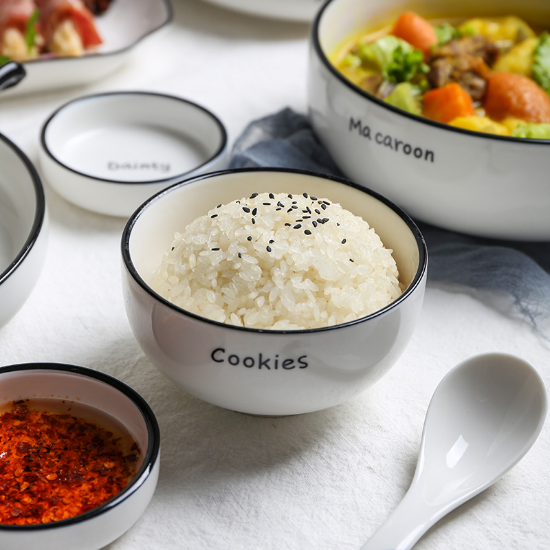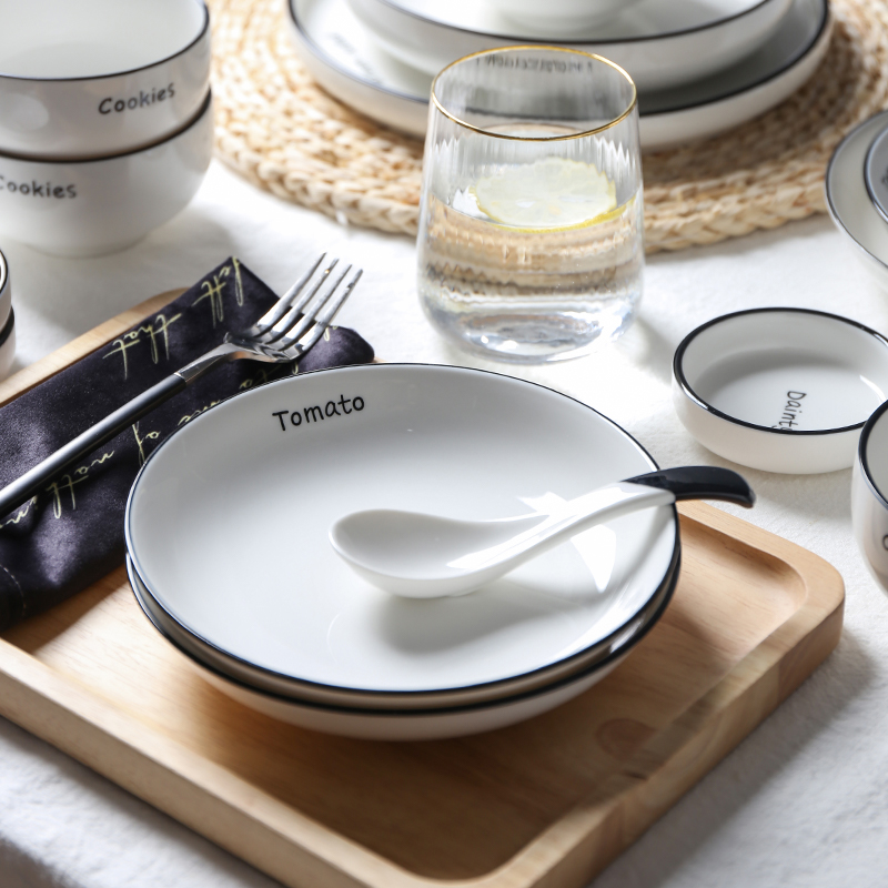 tinyhome simple Nordic style alphabet ceramic tableware rice bowl plate flavor dish soup spoon noodle bowl combination set