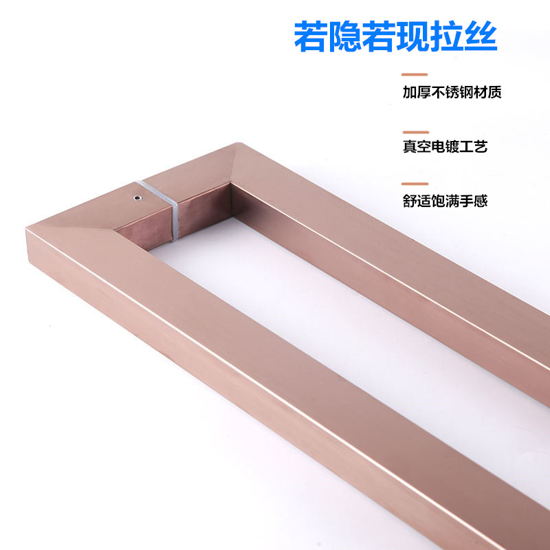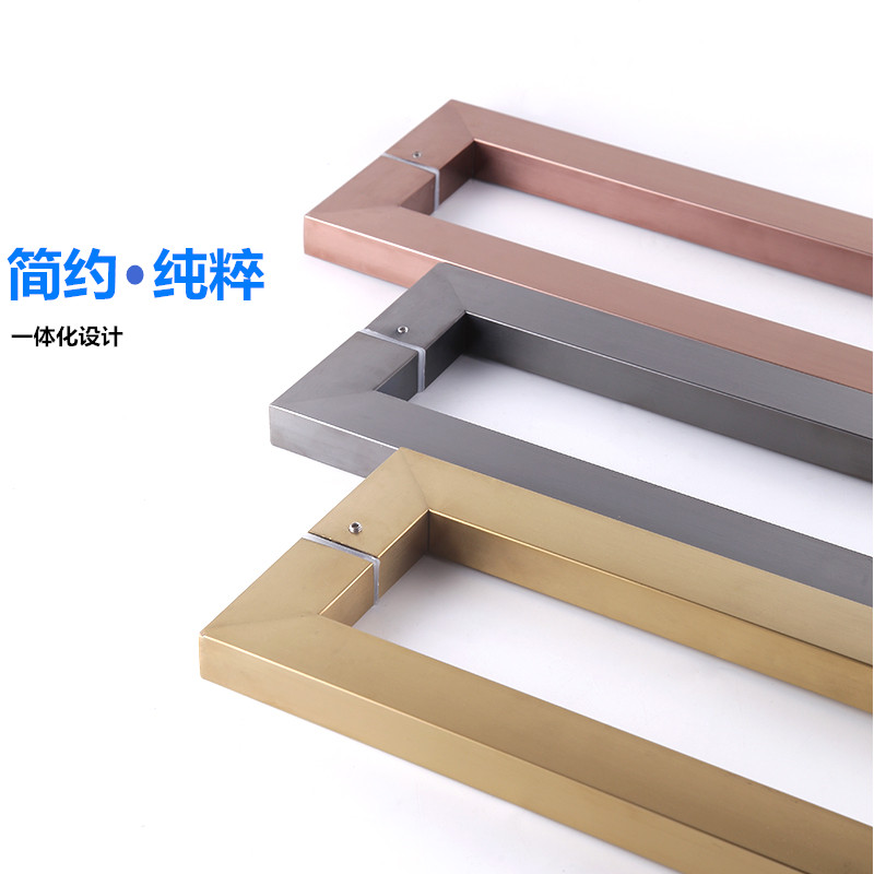 glass door handle stainless steel square pipe rose gold wire drawing black titanium alloy gate handle aluminum alloy push-pull wooden door
