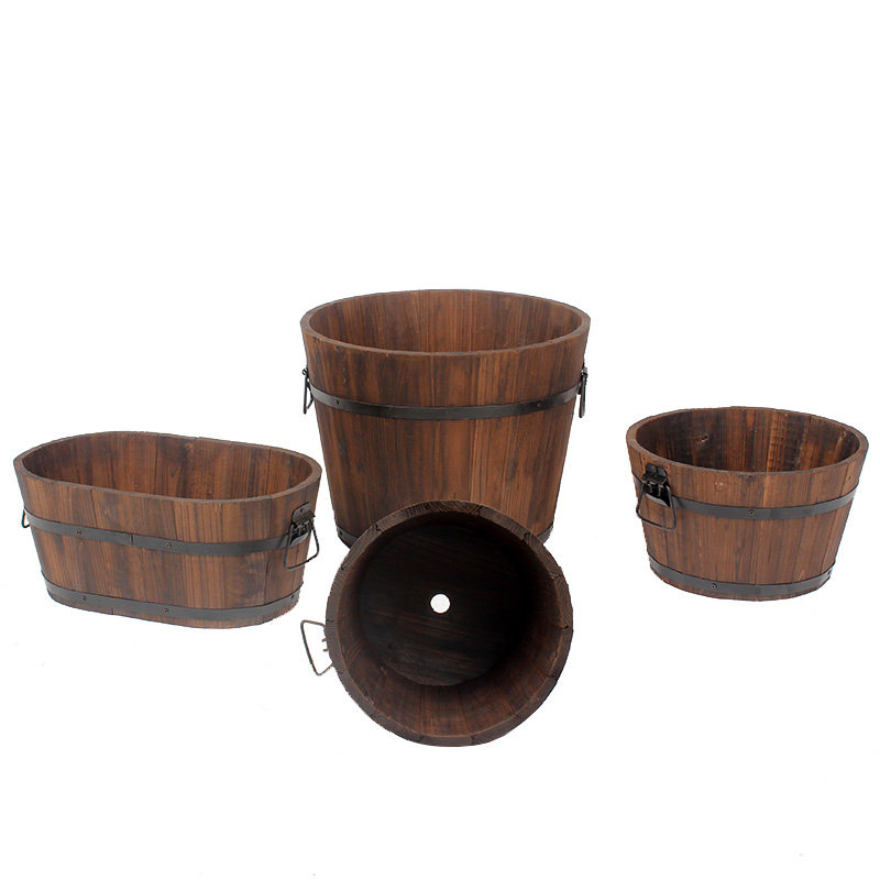 Anti-corrosion wooden flower barrel seed flower pot Creative balcony seed cauliflower box Flower box Bonsai green plant wooden barrel fleshy flower pot
