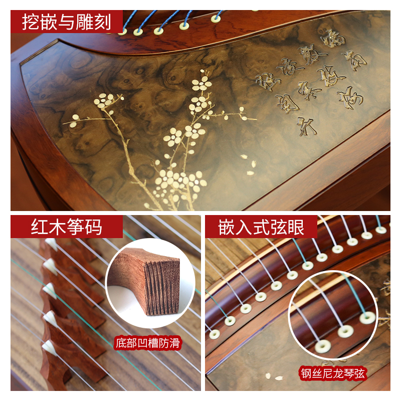 Fairy Vocal Instrumental Guzheng Professional Playing and Appraisal Exam Teaching Solid Wood Yangzhou Adult Dig Embed Lettering collection Guzheng Qin