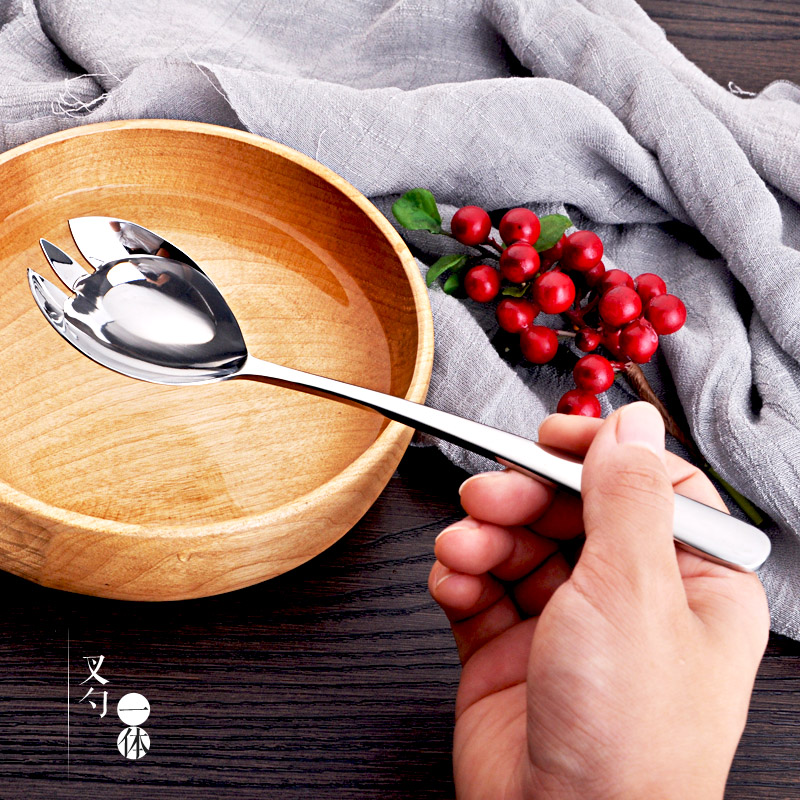 For the Erjia 304 Stainless Steel Salad Fork Spoon DOUBLE DUAL-USE SPOON CUTE FRUIT FORK CREATIVE LONG HANDLE SPOON WEST CUTLERY