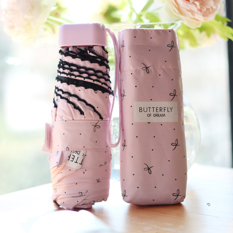 Ultra light Mini five fold umbrella folding umbrella dual use vinyl sunscreen sunscreen anti ultraviolet sunscreen pocket umbrella parasol
