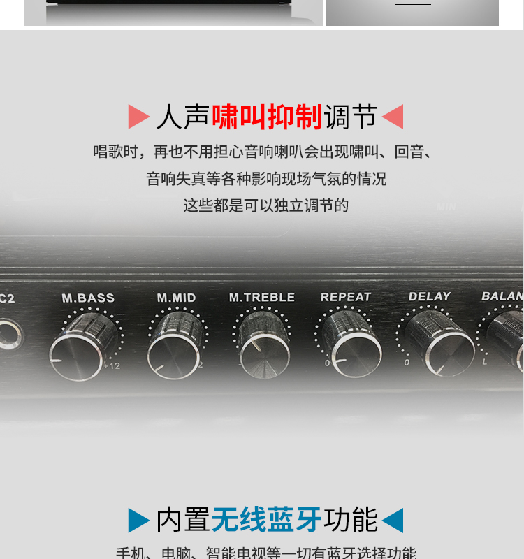 KTV high power amplifier with bluetooth 220V home karaoke stage conference amplifier 720W bass