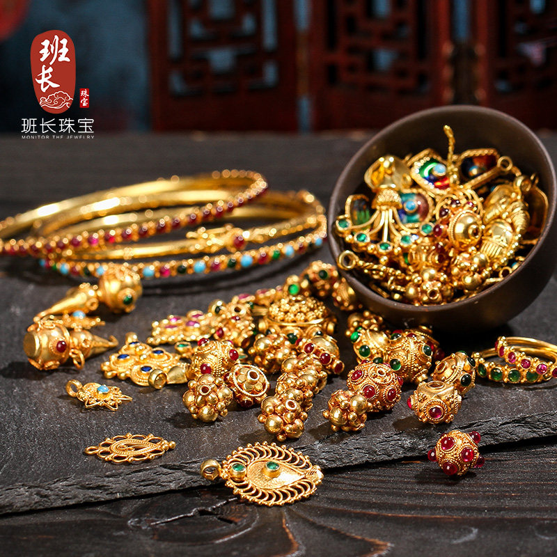 Class length jewellery Nepal handmade ancient method India old gold 18K pendant ring necklace hand-made earring ear necklace