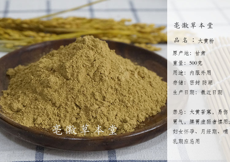 Authentic Gansu rhubarb powder horseshoe yellow no sulphur raw rhubarb powder ultra-fine rhubarb powder with other manga powder 500g