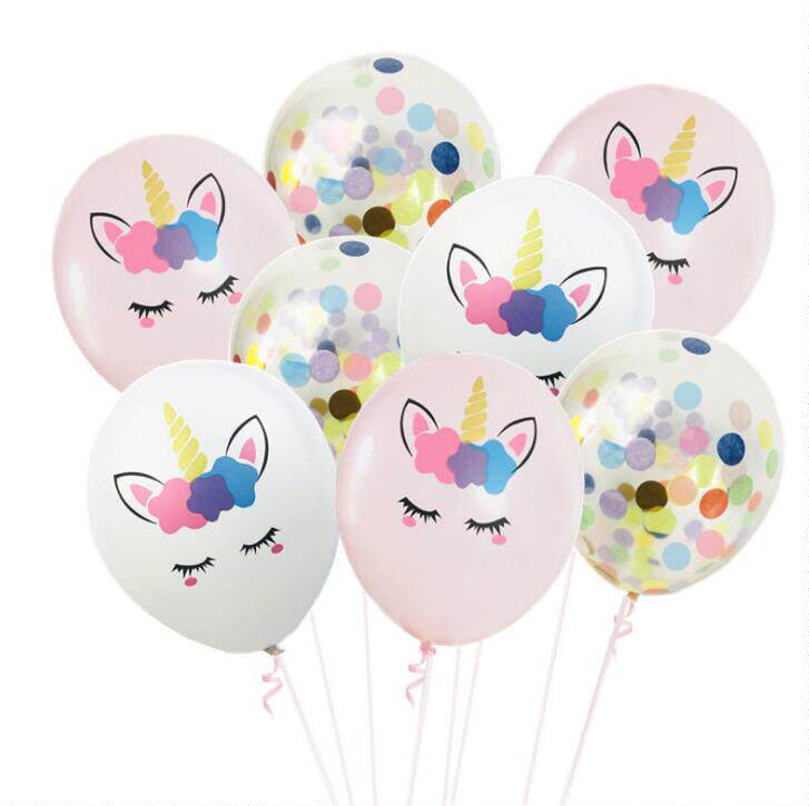 ins balloon color printing unicorn shark blue ocean dinosaur latex balloon set golden confetti 12 inch