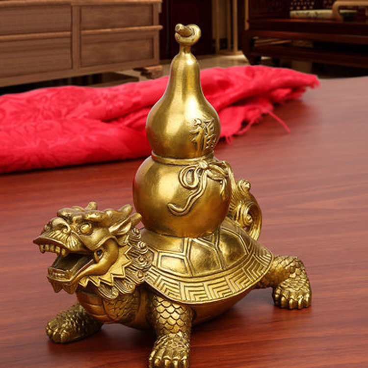 Copper dragon turtle ornament pure copper gourd home decoration dragon turtle gourd large small ornament room simple animal Chinese style