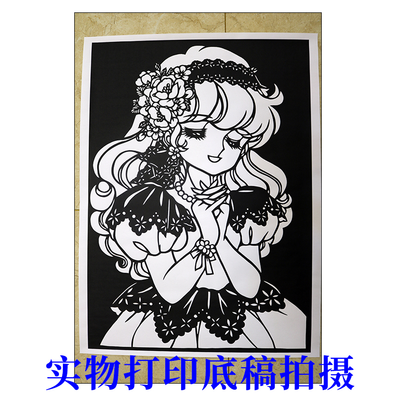 Cartoon animation character paper cut pattern black and white printed printed printed printed printed printed printed printed printed copy of high-definition hand-made cartoon material