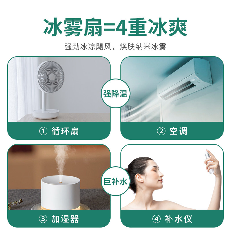 Standard version (glacier white) fast cooling without shaking your head without batteries ● send a charging line ice up grade version (retro green) fast cooling and purifying and purifying the air can shake your head 4000mAh