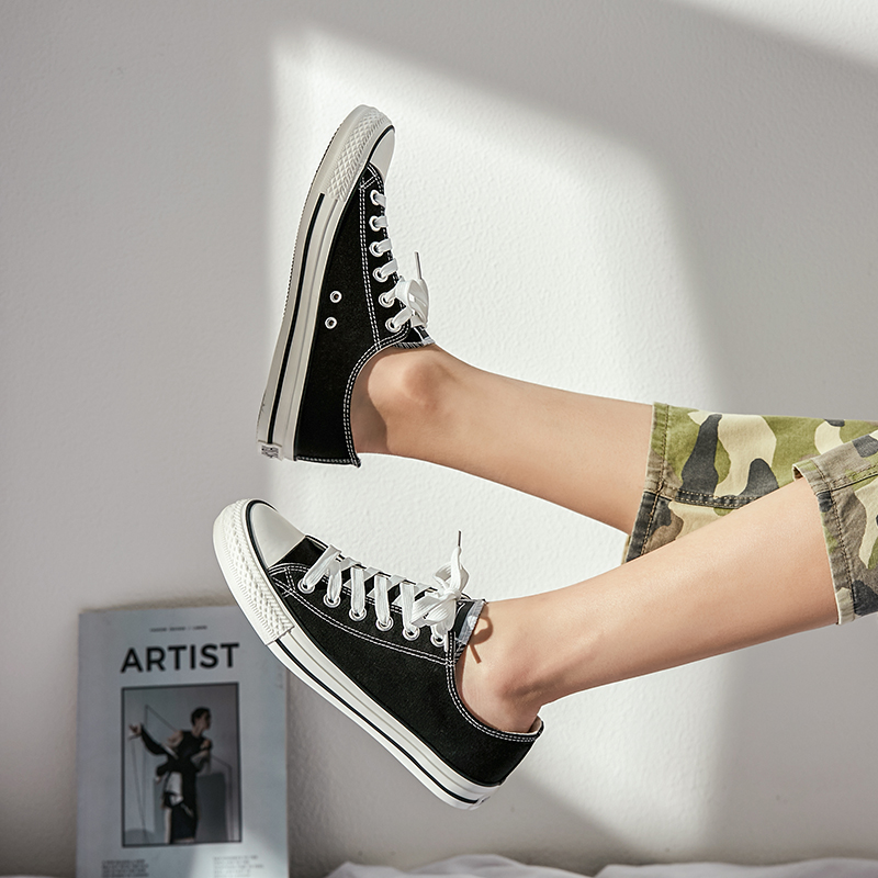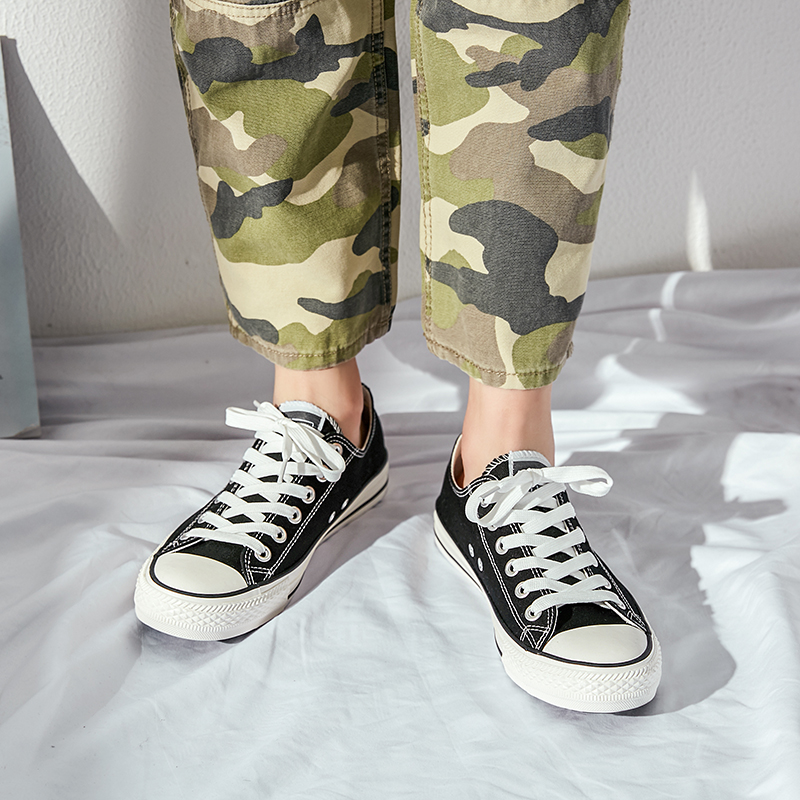 Universal classic black low-top canvas shoes men and women Korean version couples all-match casual shoes cloth shoes large size student shoes