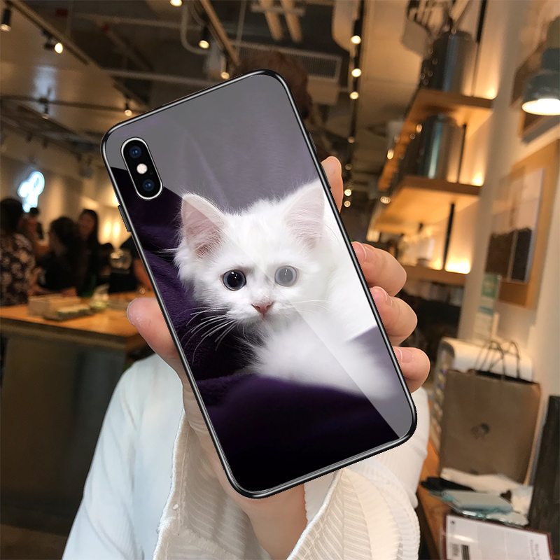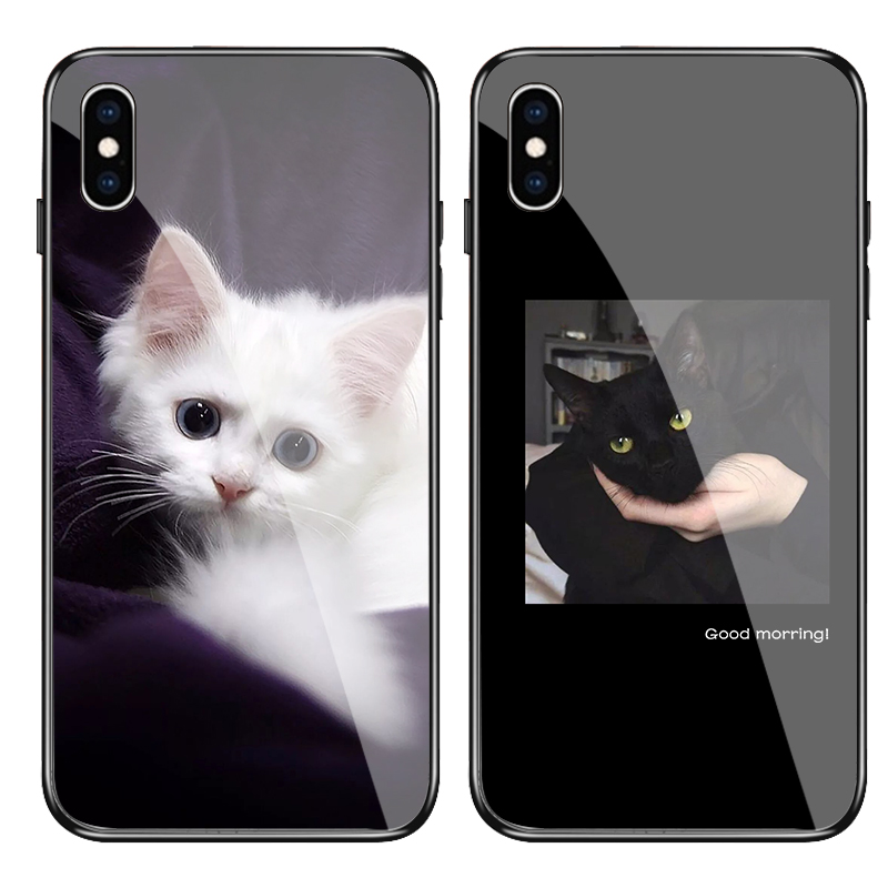 ins wind cute cute cat illustration apple 6 6splus i7 i8 i7p i8plus tempered glass mirror mobile phone case iphone XS m