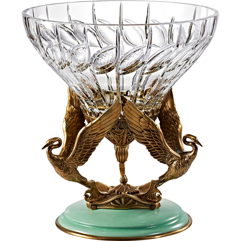 Phoenix Mercure luxury retro European Prague series double crane Czech crystal glass fruit plate living room decoration