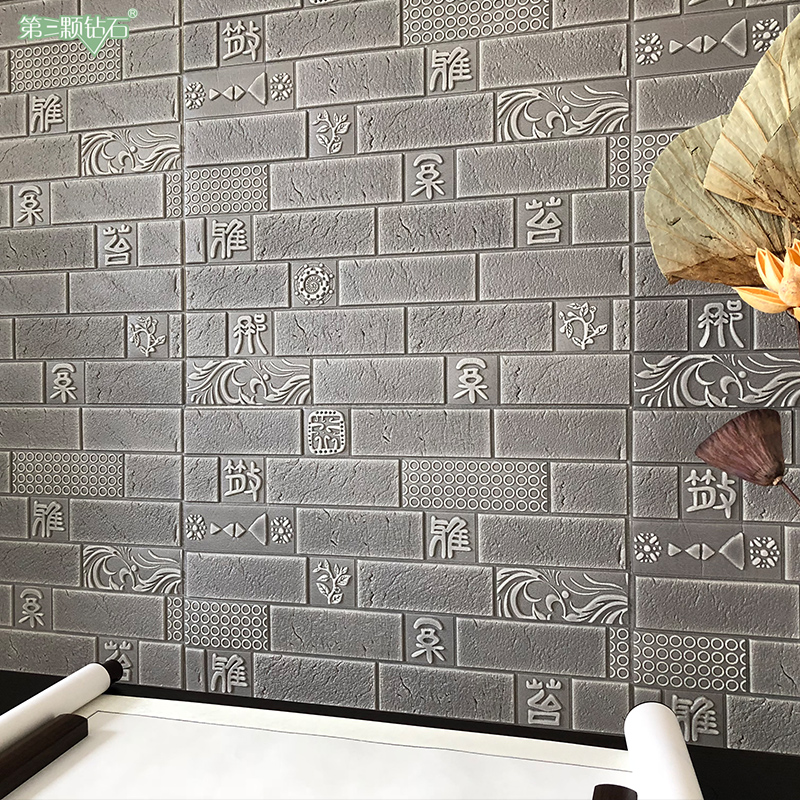 China Wind 3d Solid Wall Sticker Culture Stone Brick Chinese Living Room Decoration Thickened Background Wall Moisture Self adhesive paper A4