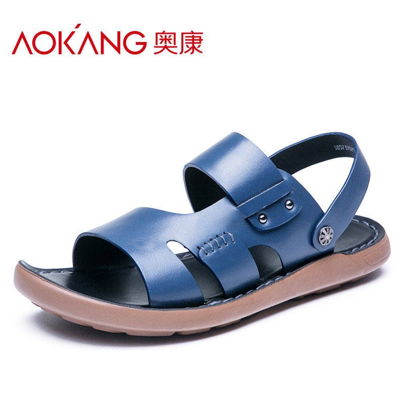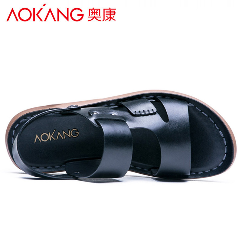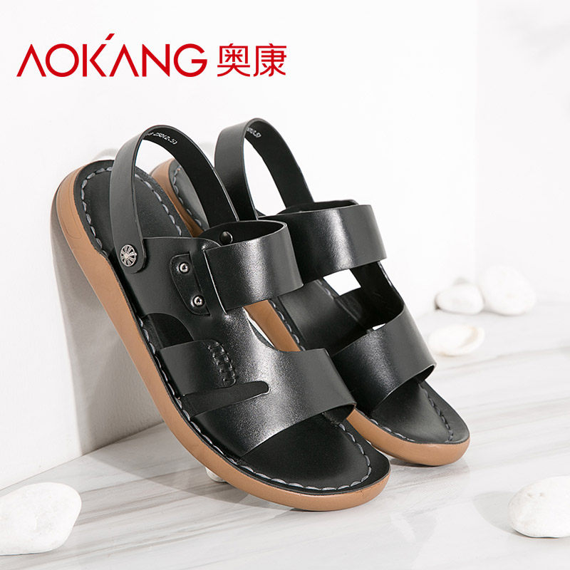 Okang New Summer Sandals Men Leather Anti-Slide Wear Resistance Shoes Official Leisure Trend Slippers