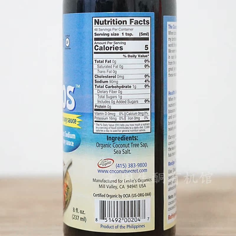 Spot Coconut Secret Natural amino coconut sauce anti-sensitive soy sauce without fat and soybean 237ml