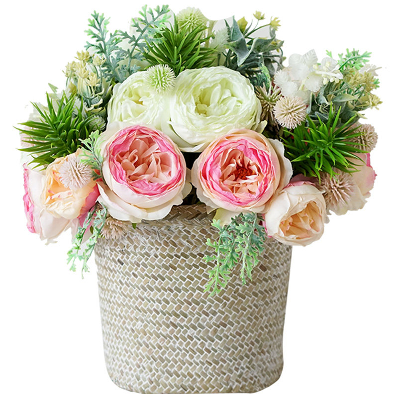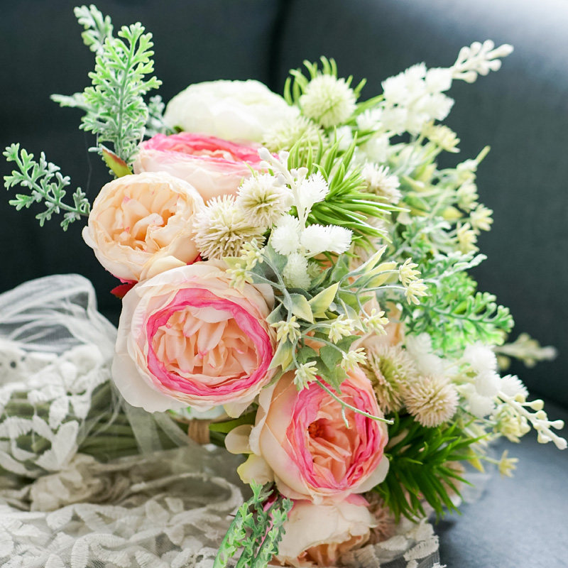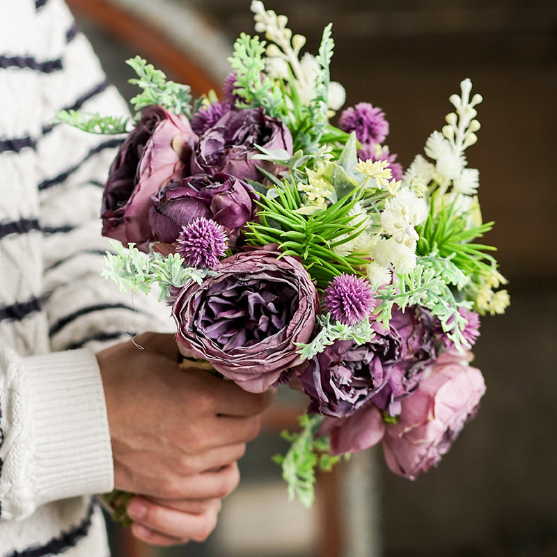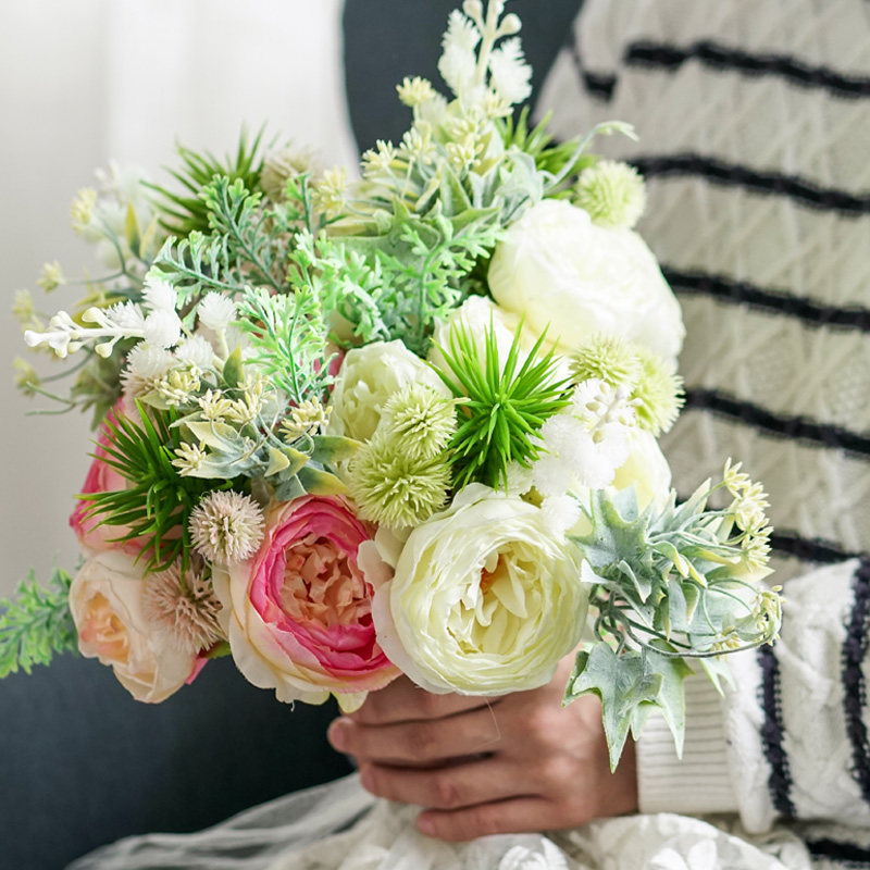 Left bank wheat field island view hand-tied fur ball peony flower 32cm short branch flower arrangement living room coffee table artificial flower fake flower tie flower