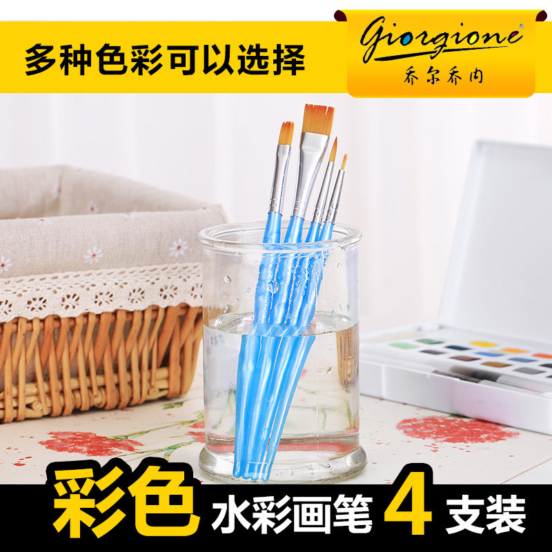Giorgione 4 pack nylon hair brush set gouache watercolor oil paint brush children's drawing graffiti beginner yellow