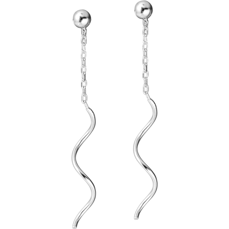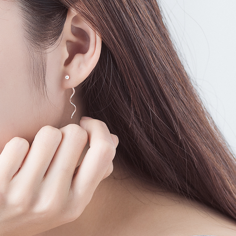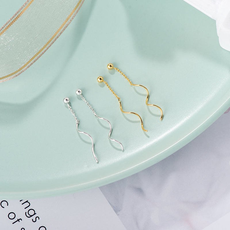 925 sterling silver plated 14k wavy line long version of the face thin earrings Feminine temperament simple ball earrings Super fairy earrings
