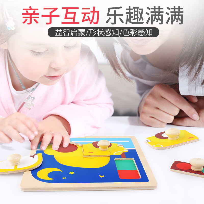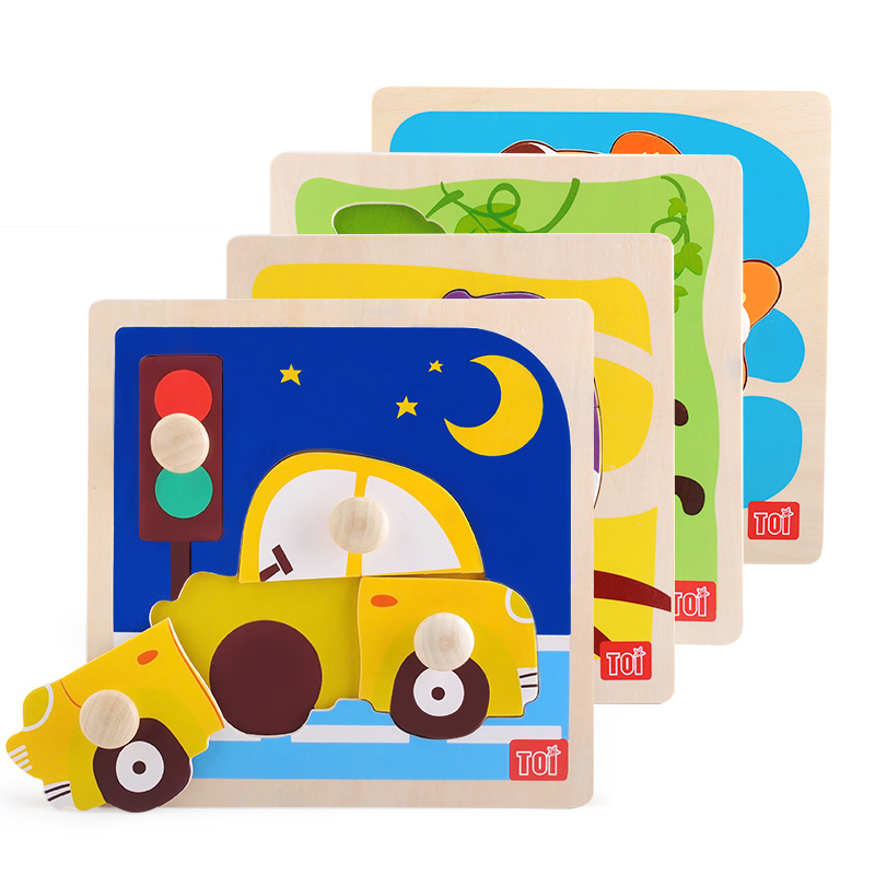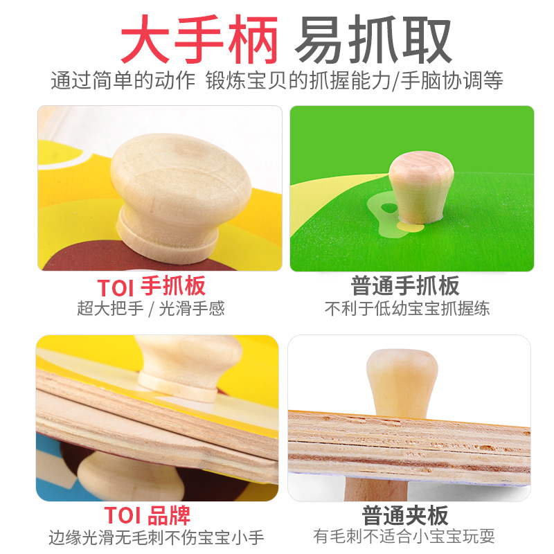TOI Wooden hand scratching board puzzle big block Baby early education toy Animal puzzle Children's cognition 0-3 years old