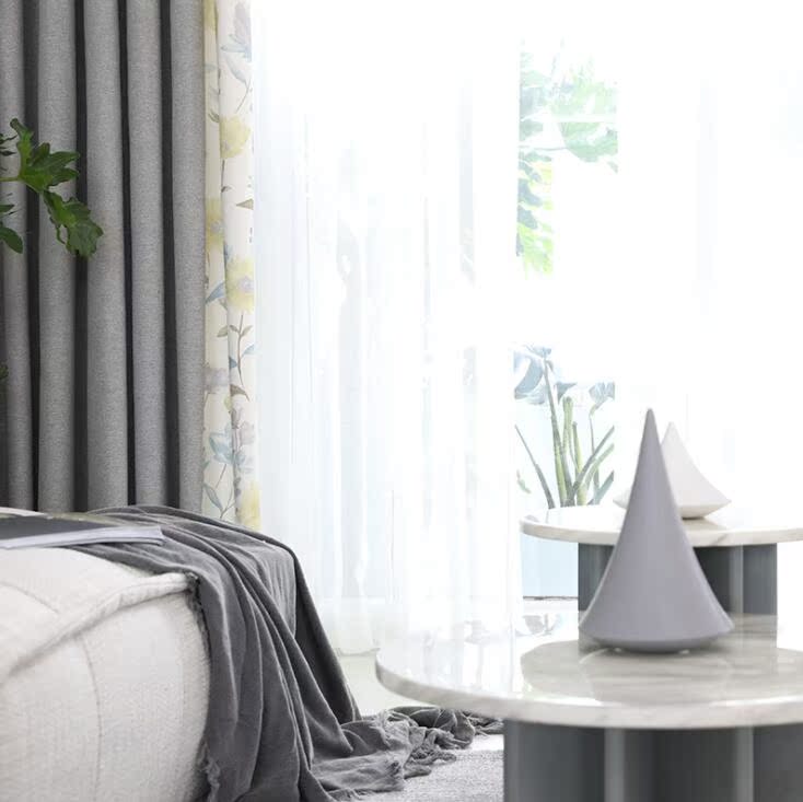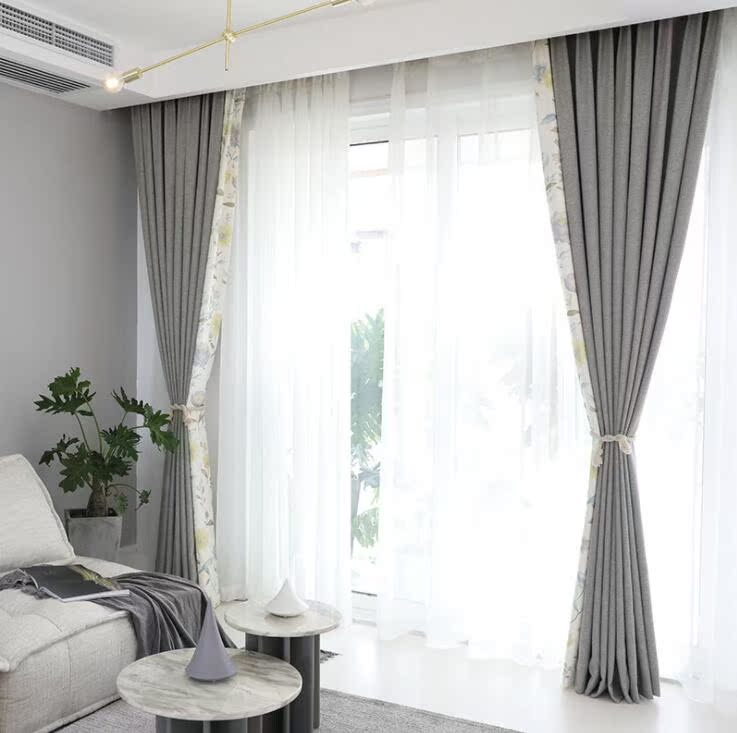 Minimalist modern Nordic wind grey splicing curtains Living room Bedroom cotton flannel linen curtains door-to-door customization