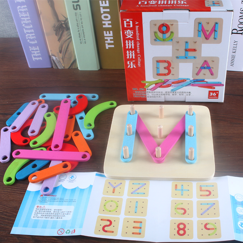 Numbers, alphabets, shapes, puzzles, 3-6-year-old children's fun puzzles, spelling and inserting building blocks, kindergarten educational toys