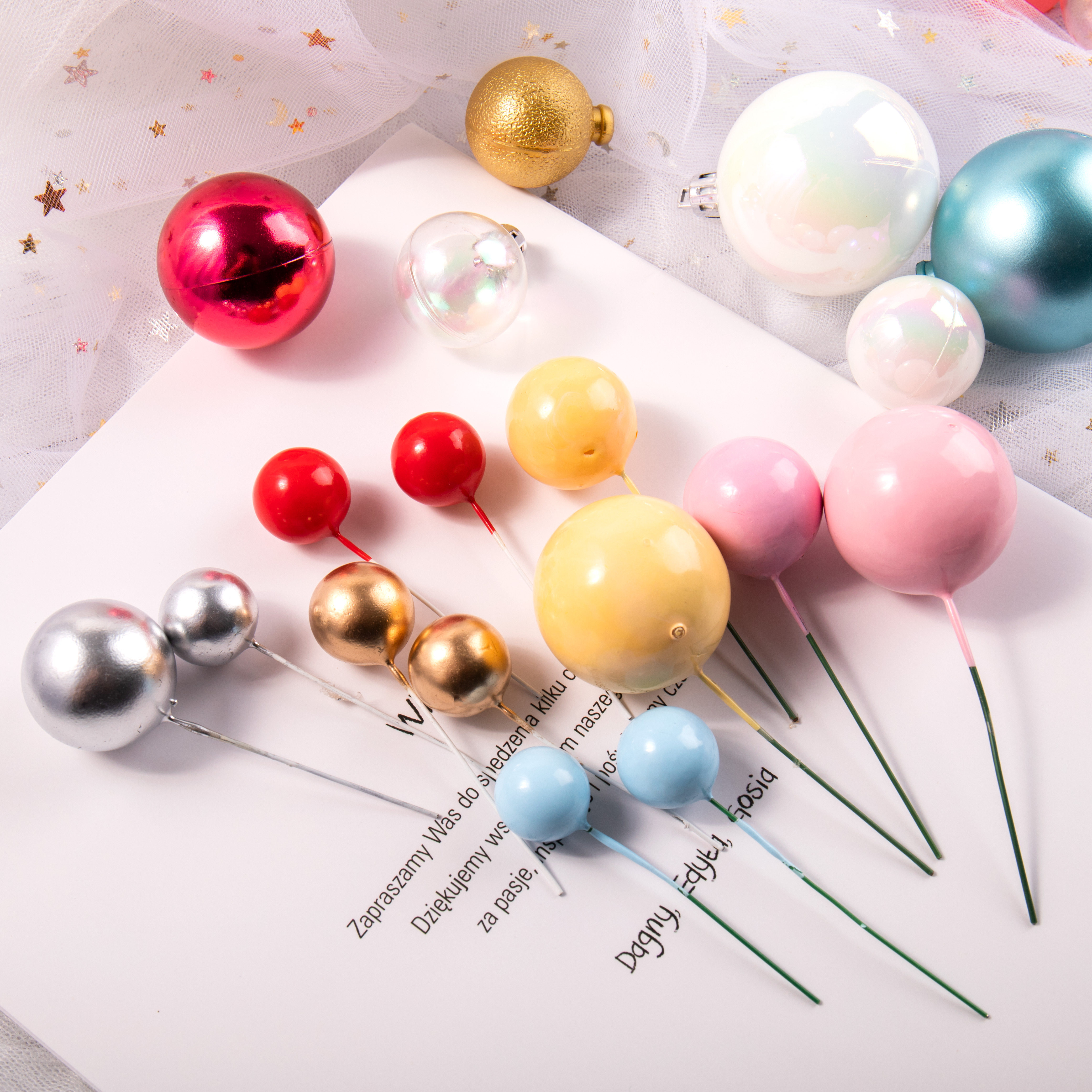 Gold ball silver ball birthday cake decoration plug-in ins cold wind color ball dress up net red dessert baking accessories