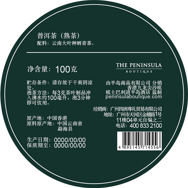 Peninsula Boutique, Hong Kong, China-Pu'er Tea Tea Yunnan Pu'er Tea Cooked Tea Canned Tea Gift