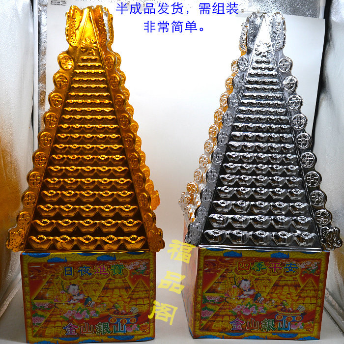 Jinshan Silver mountain paper tie sacrificial supplies burned 700th anniversary blister gold and silver Mountain ingot Jinshan Silver Mountain pair