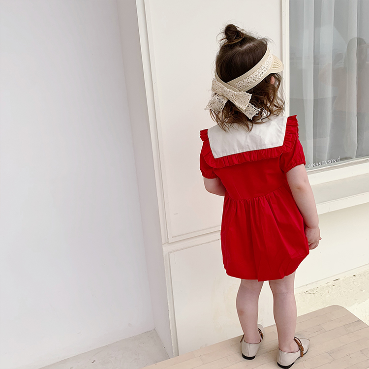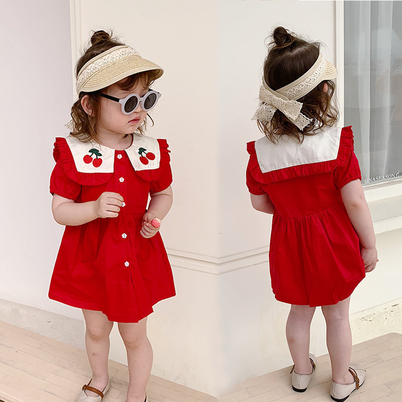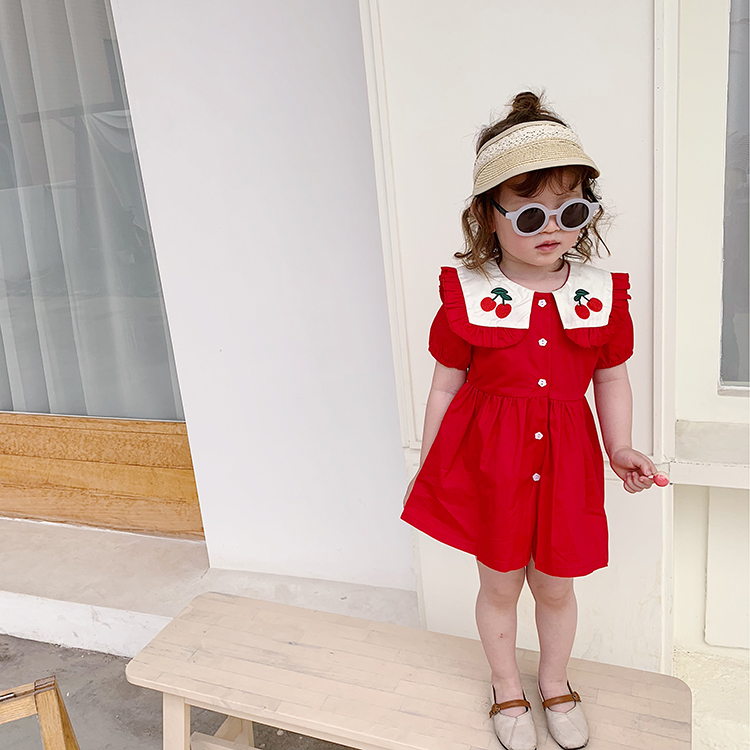2022 Summer New Girl Cherry Printed Red Ocean Dress Female Baby Sweet short sleeve dresses Dresses 5177