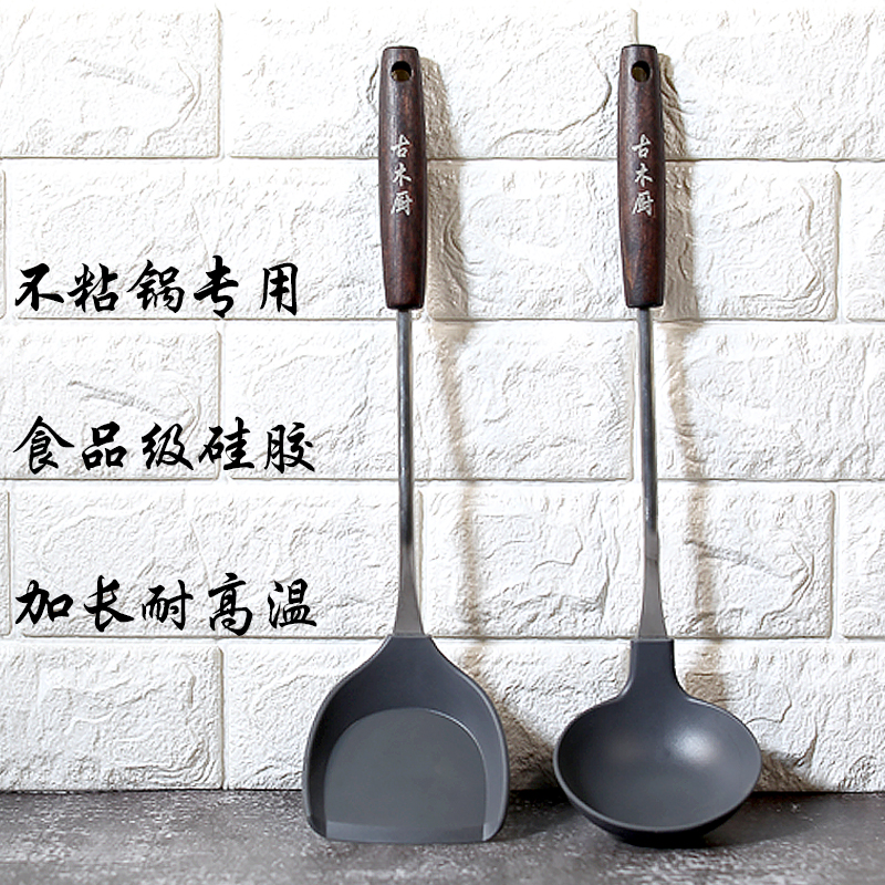 Silicone spatula non-stick pot special high temperature household cooking shovel kitchen utensils spoon stainless steel wooden long handle set
