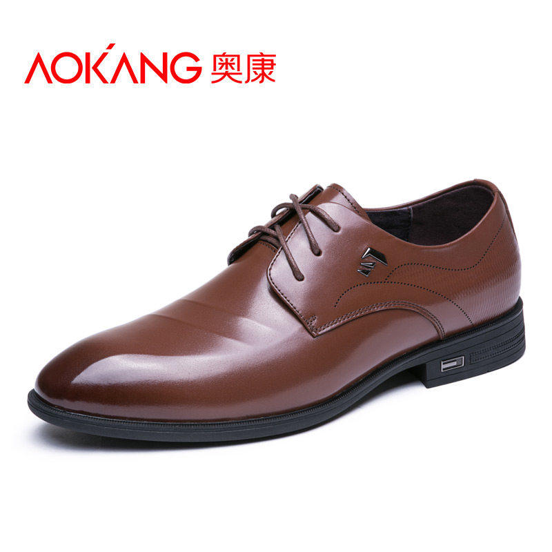Okong men's shoes autumn new business dress shoes men real leather English youth tie anti-slip official