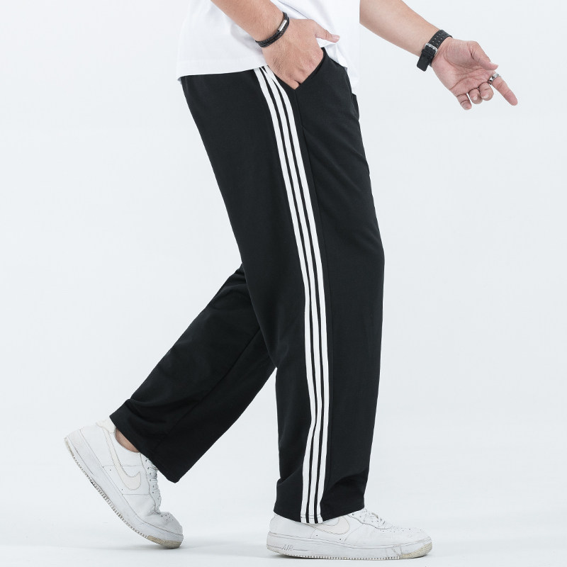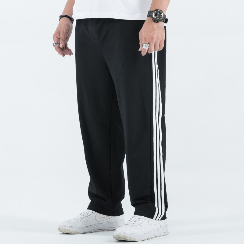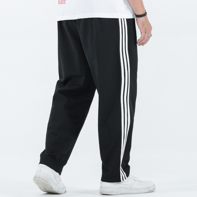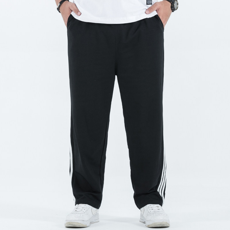 Plus Fattening Yard Fattening Guy High Waist Elastic Waist Belt Three Bars Loose Straight Barrel Long Pants Men Big Size Casual Sports Pants