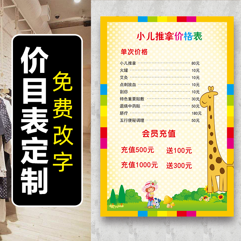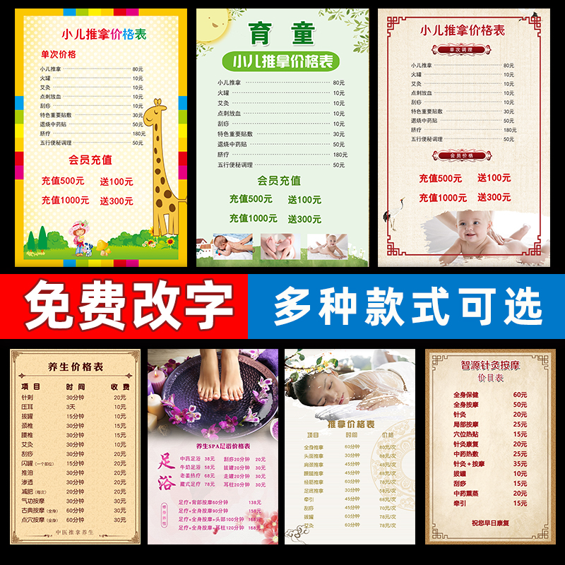 Children massage price list Chinese medicine physiotherapy Moxibustion health Hall project price list Poster custom wall sticker