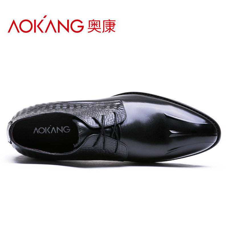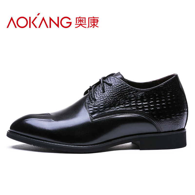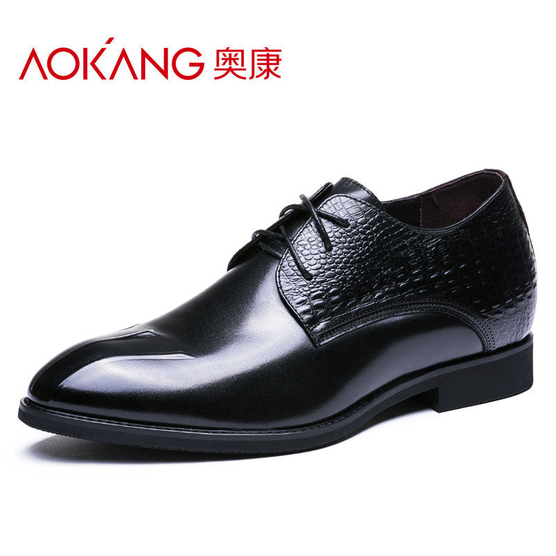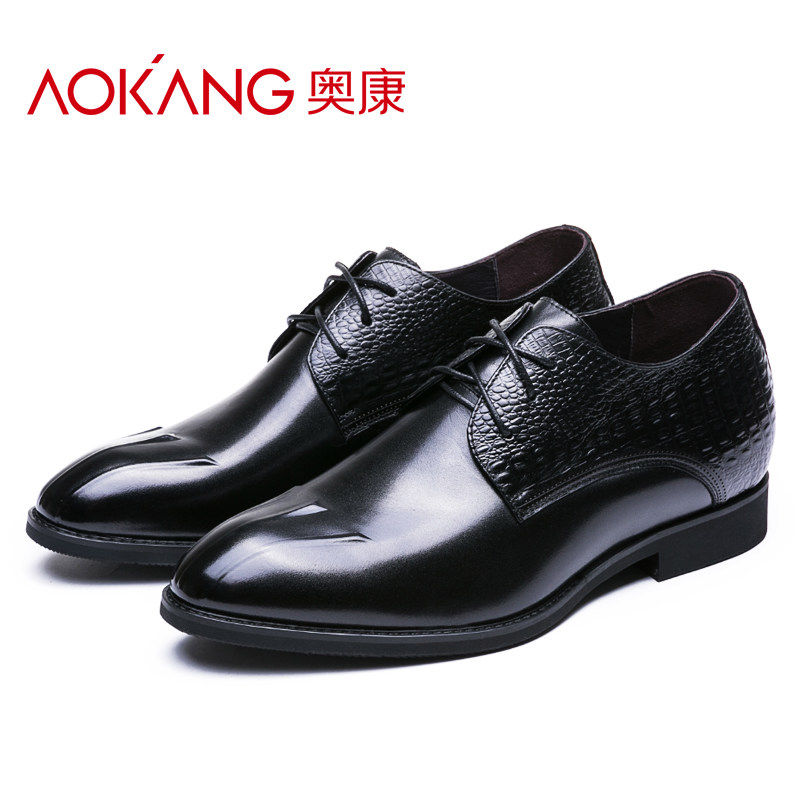 Aokang men's shoes British height increased 6cm leather shoes business formal leather shoes leather Korean version pointed toe heightening shoes lacing