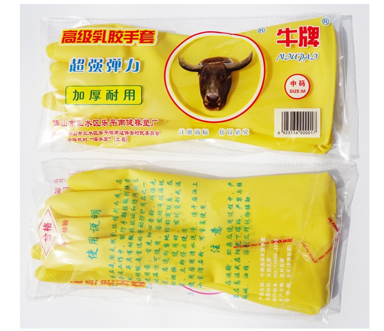 Bull Sign Latex Gloves Plastic Thickened Dishwashing Gloves Domestic Labor Bulls Gluten Durable Waterproof Rubber Gloves