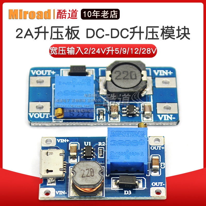 2a booster board DC-DC adjustable boost regulator power supply module mt3608 input 2-24V liter 5 9 12 28V