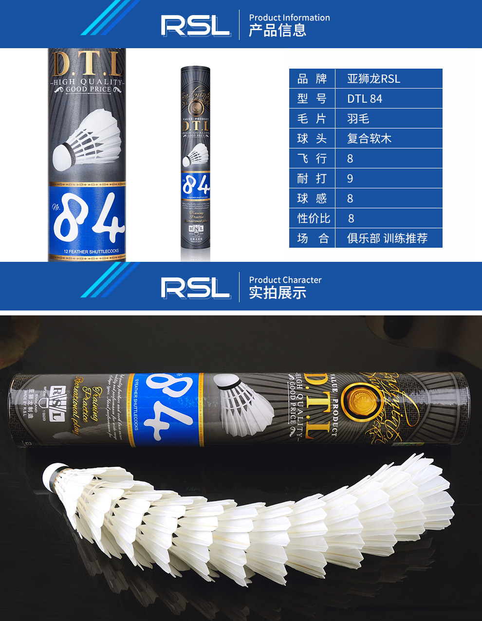 RSL Asian Lion Dragon New DTL big Tongli badminton resistant training 81 83 84 85