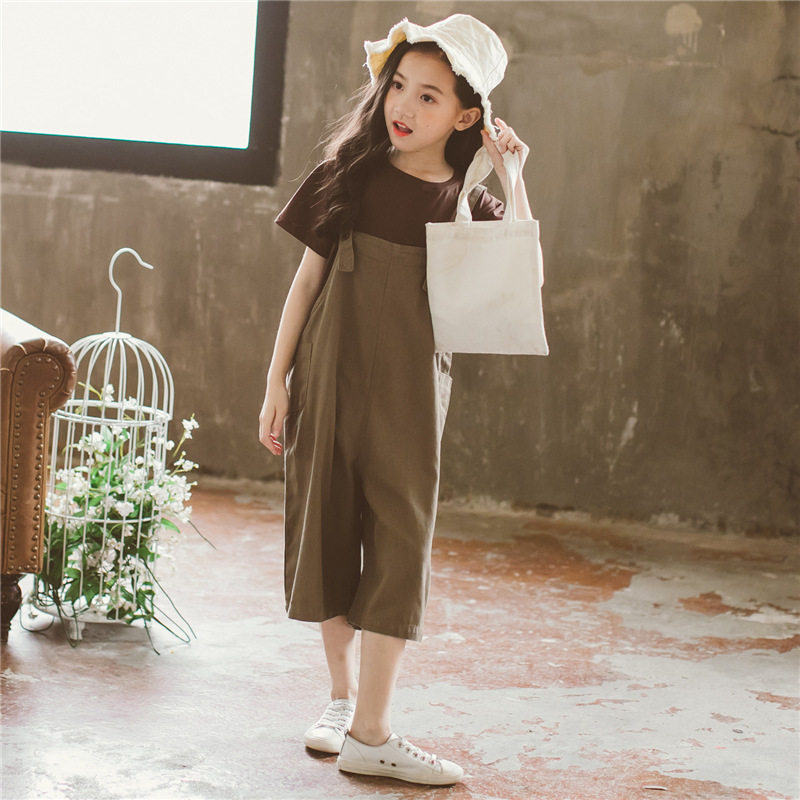 Girls 2023 new Korean strap pants suit in large children's wear in childhood summer dress two - piece sets