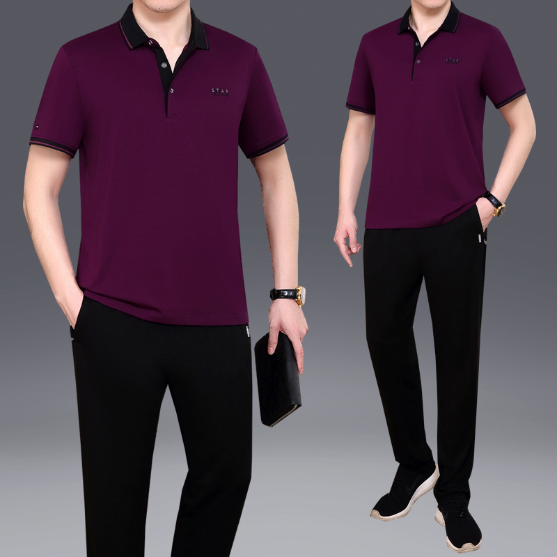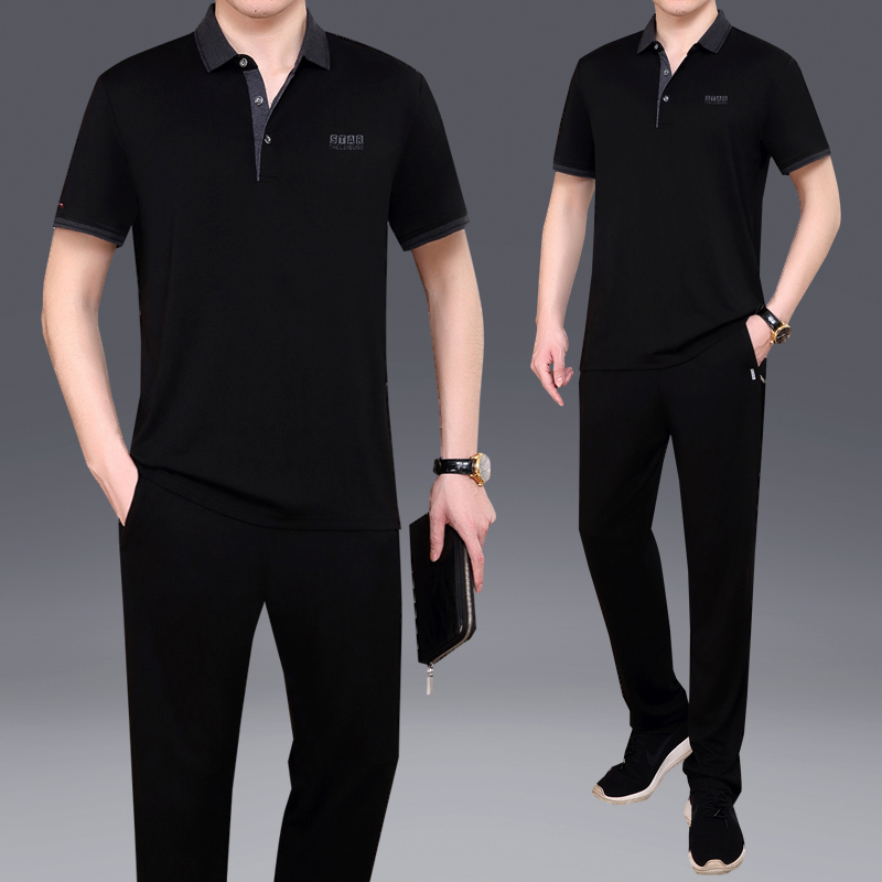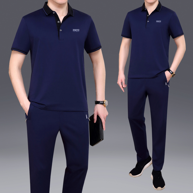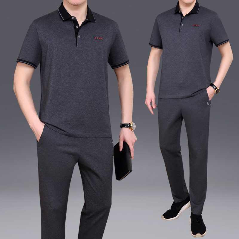 Middle-aged men's sports suit summer large-size short-sleeved trousers thin cool middle-aged leisure sportswear men