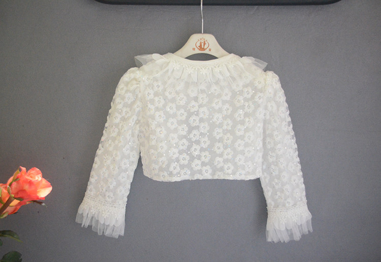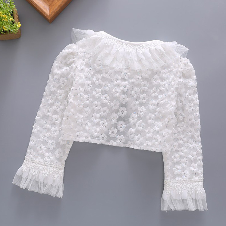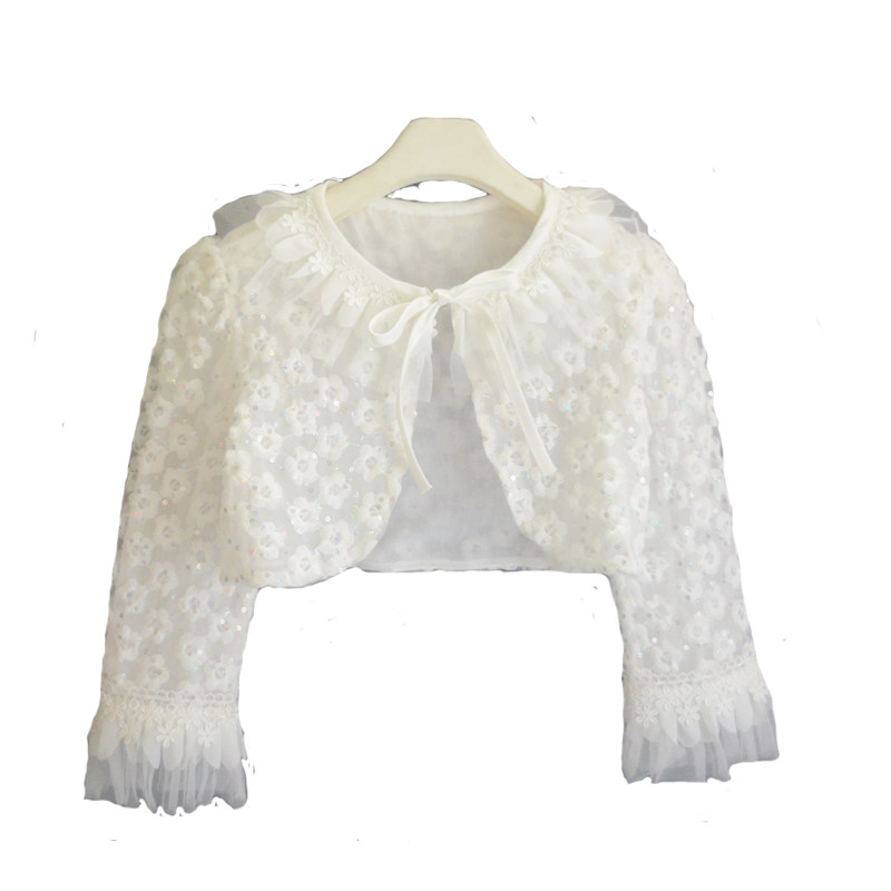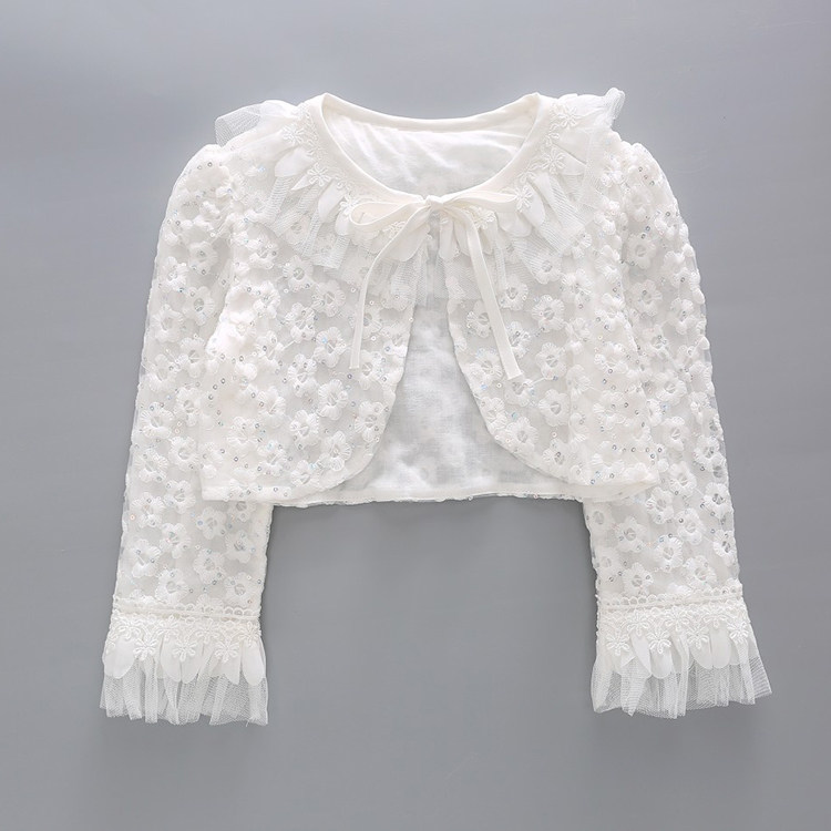 Girls lace shawl small coat spring and autumn children's white wedding dress with flower girl and princess skirt cardigan for big children