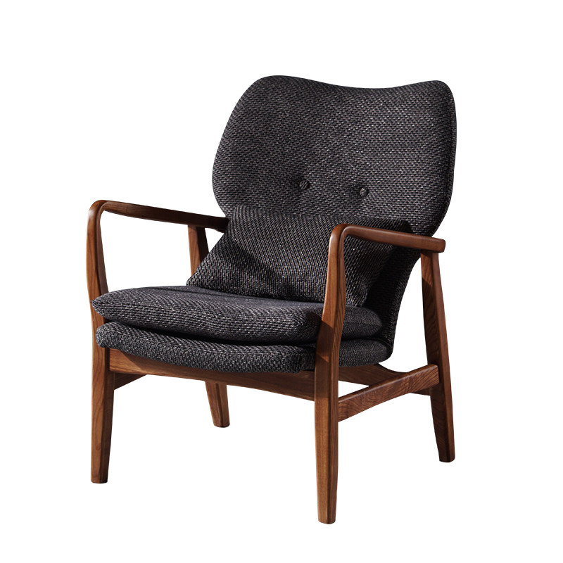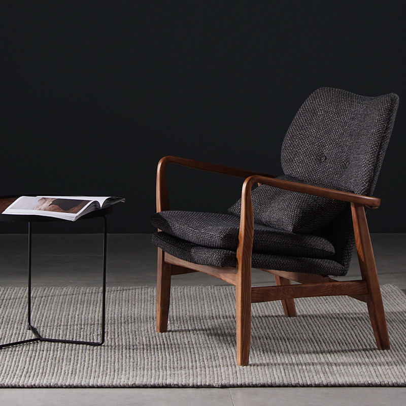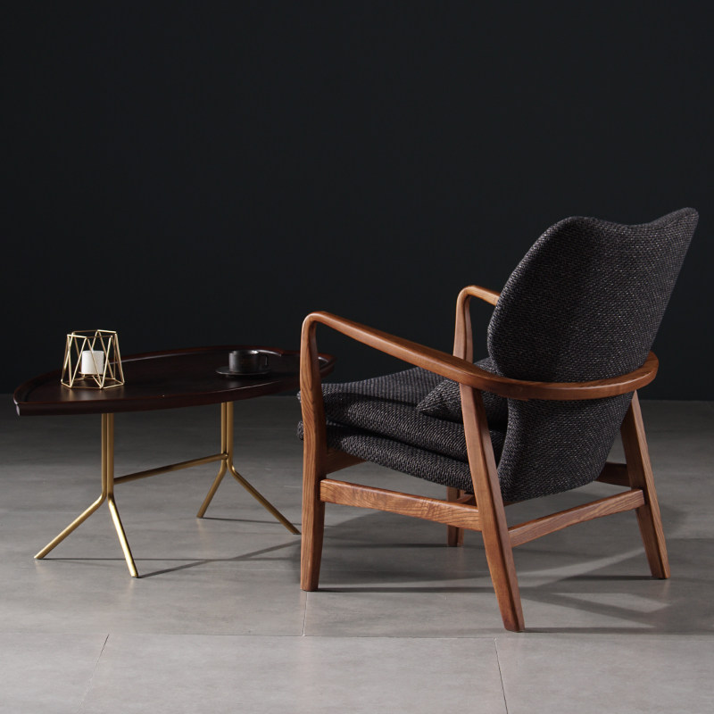 Lazy space Nordic leisure fabric recliner bedroom light luxury lazy chair Ash single solid wood sofa chair