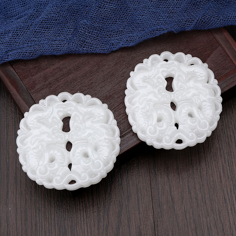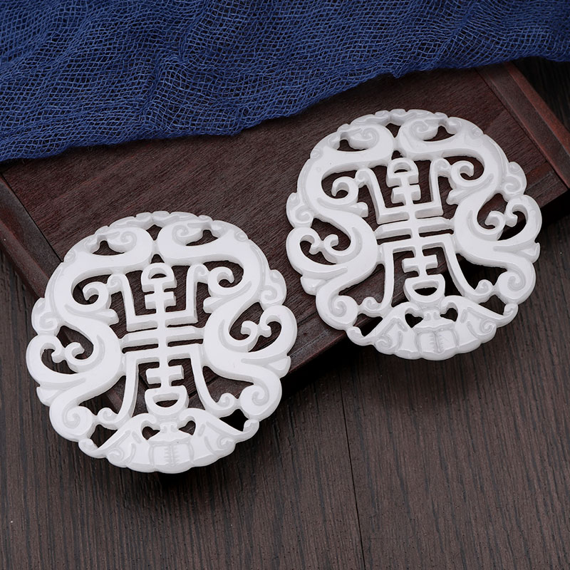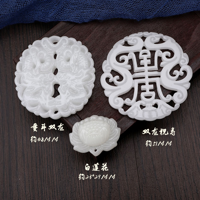 New Shuanglong birthday hollow tassel jade antique white jade pendant pendant handmade accessories Hanfu waist with jade pendant