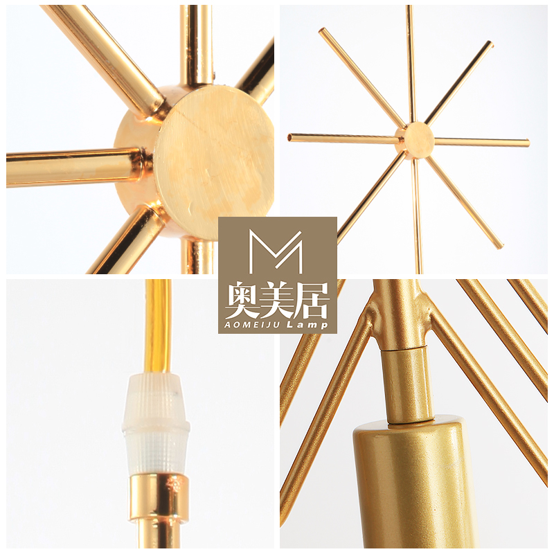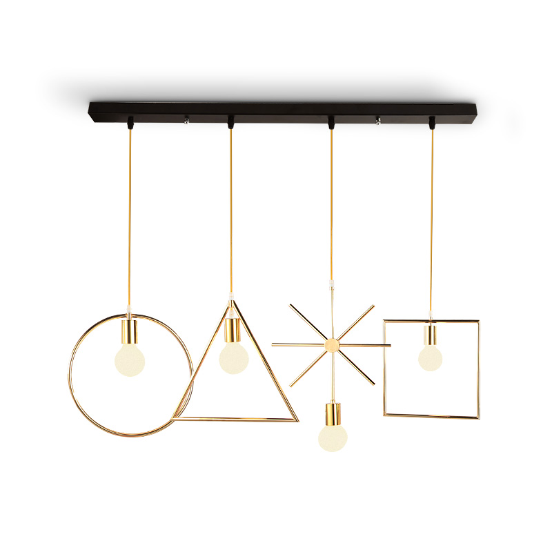 Gold rectangular gold bei-shaped gold round golden triangular golden square gold 3 head Composition 1 gold 3 head Composition 2 crystal small pendant lamp Three heads Macron powder Yellow grey 3