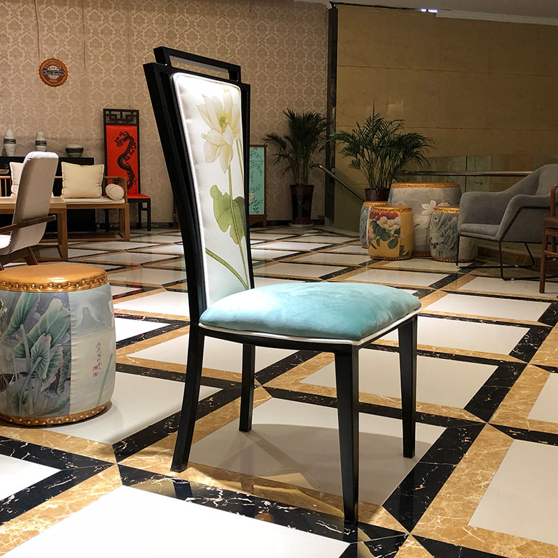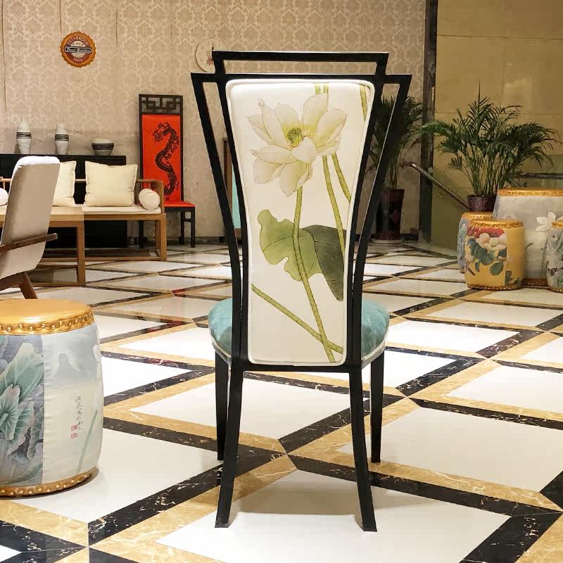 Hotel dining chair restaurant restaurant home modern Chinese style with backrest soft bag stool wrought iron black printing hotel chair